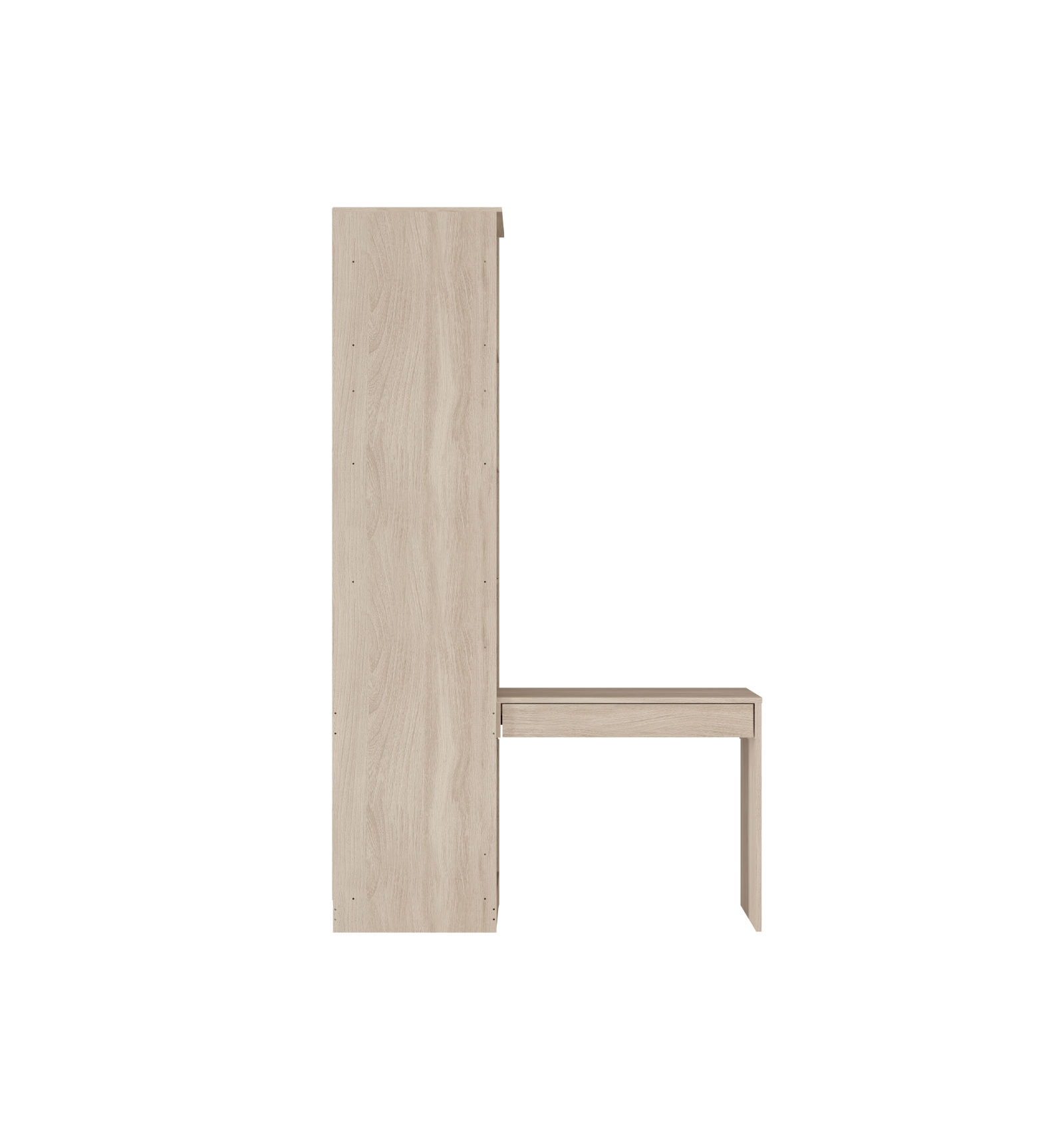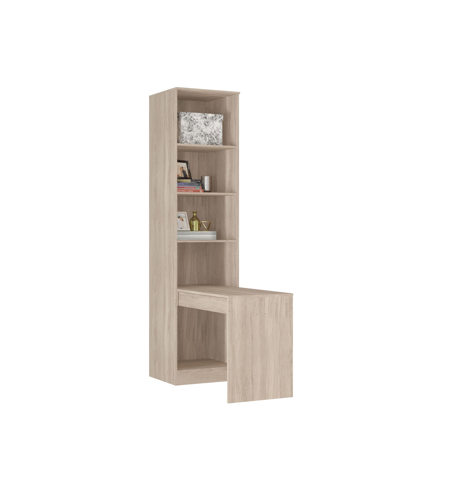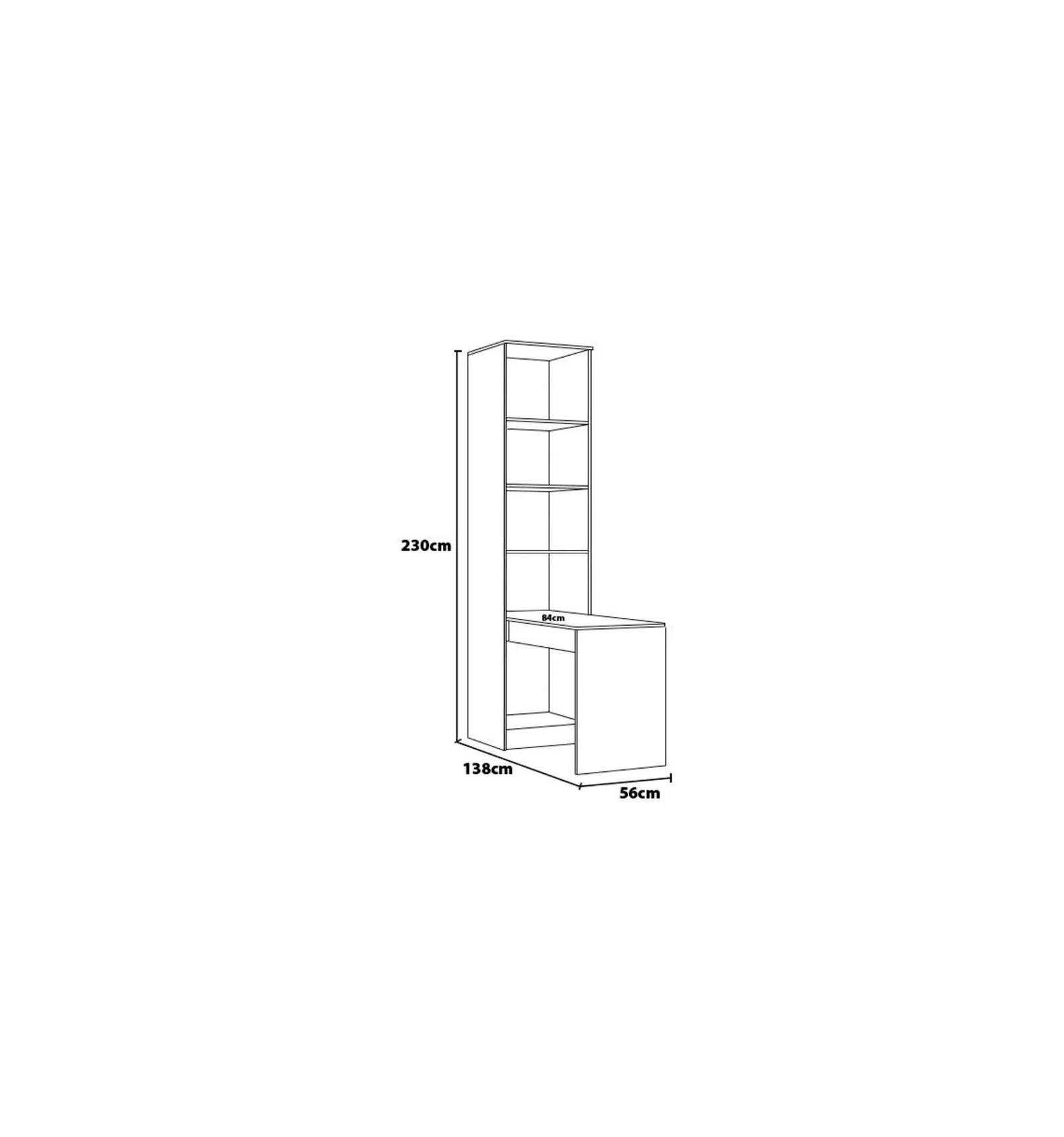Con unas medidas de 56 x 136 x 230 cm de altura, este escritorio biblioteca es una práctica solución para los que buscan tener un espacio de trabajo y archivo a mano.