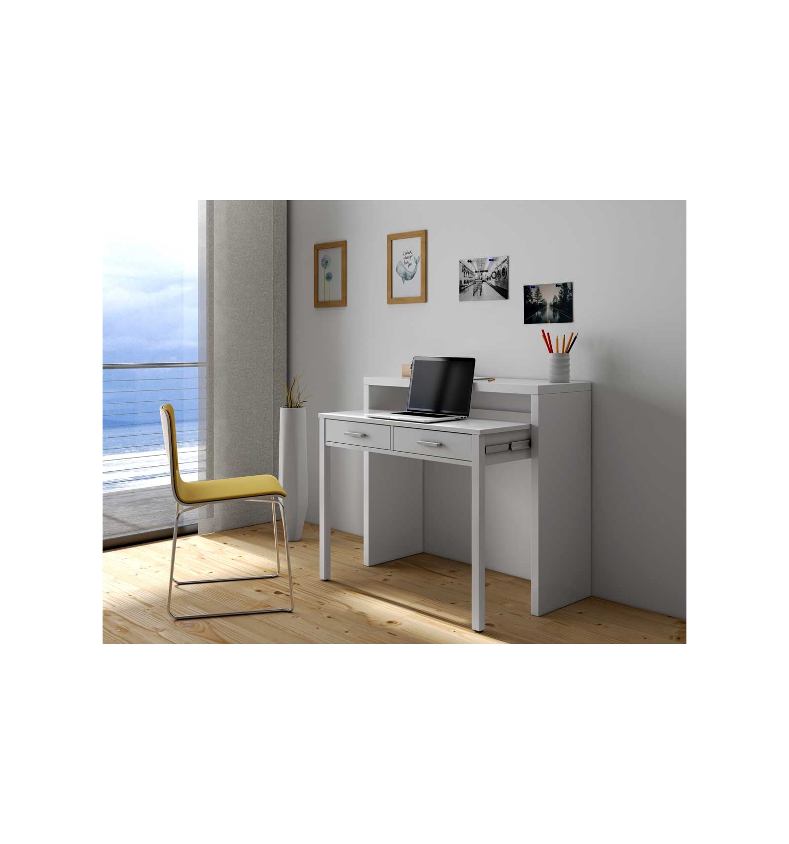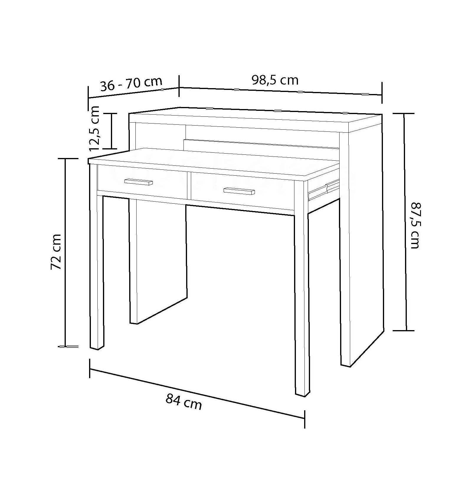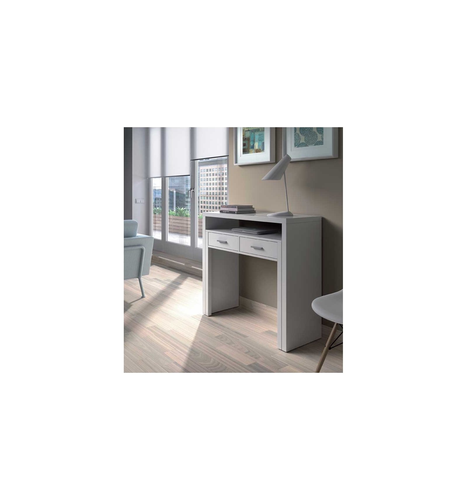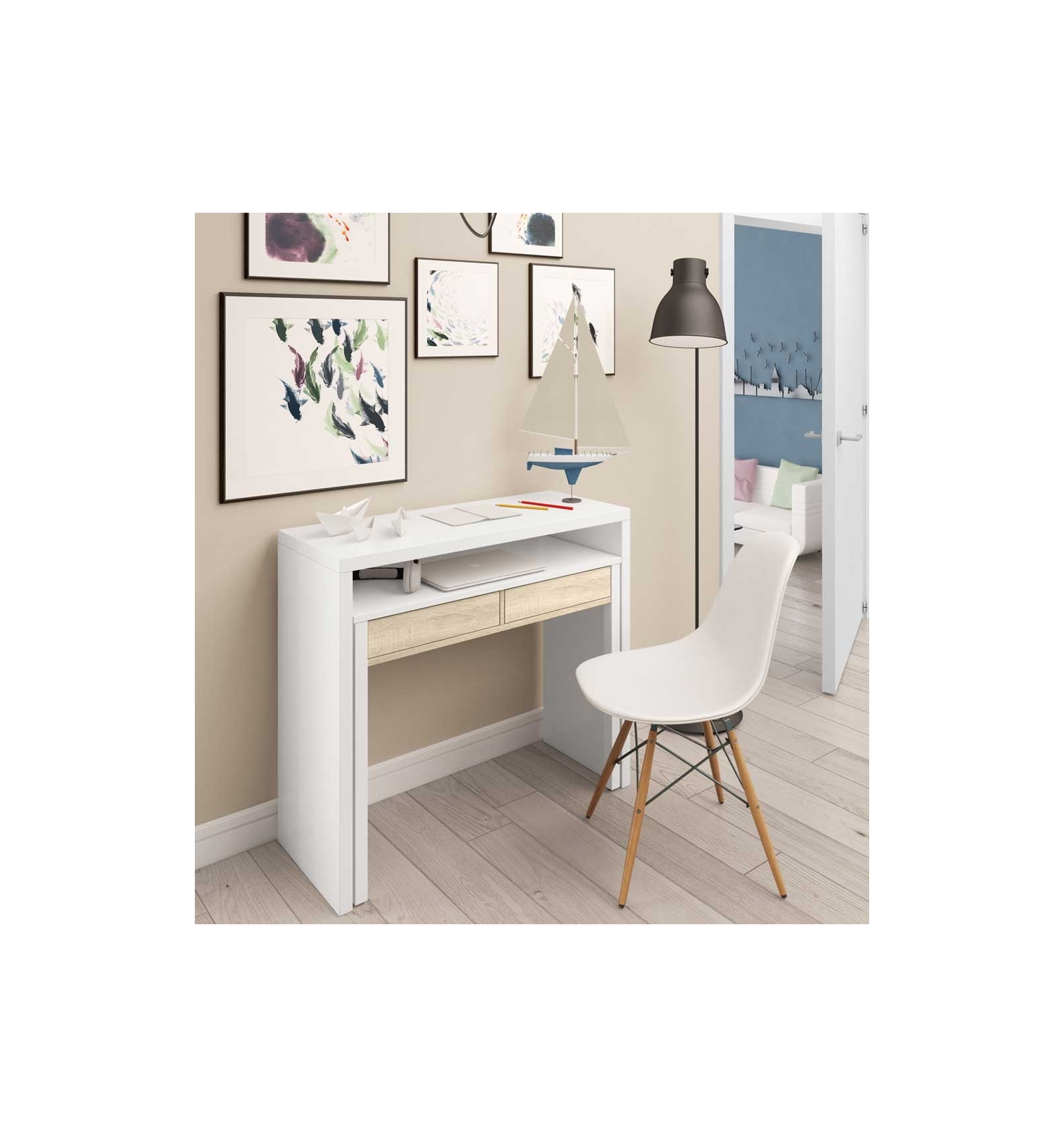 Este mueble tiene un diseño especial que lo hace muy versátil y funcional: es una consola que, de forma rápida y fácil, se convierte en escritorio. Cuando no estés trabajando puedes mantenerla cerrada para ahorrar espacio. Al abrirla para trabajar puedes desplazarla y ganar 34 cms de profundidad.