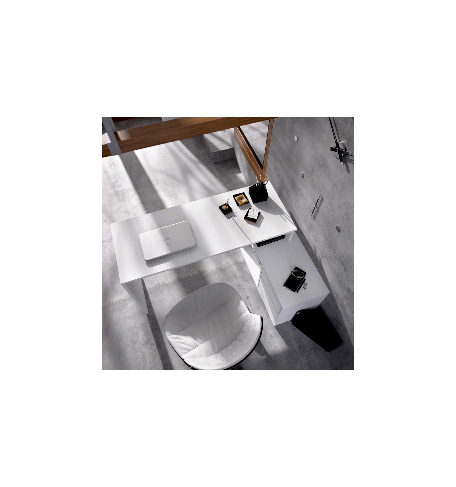 Sus líneas rectas y acabado bicolor en en natural y blanco brillo permiten que encaje en cualquier estilo decorativo.