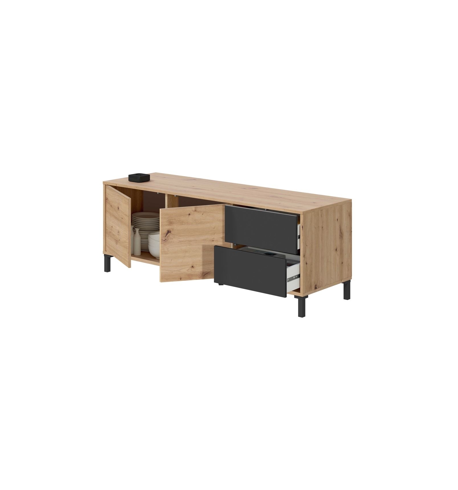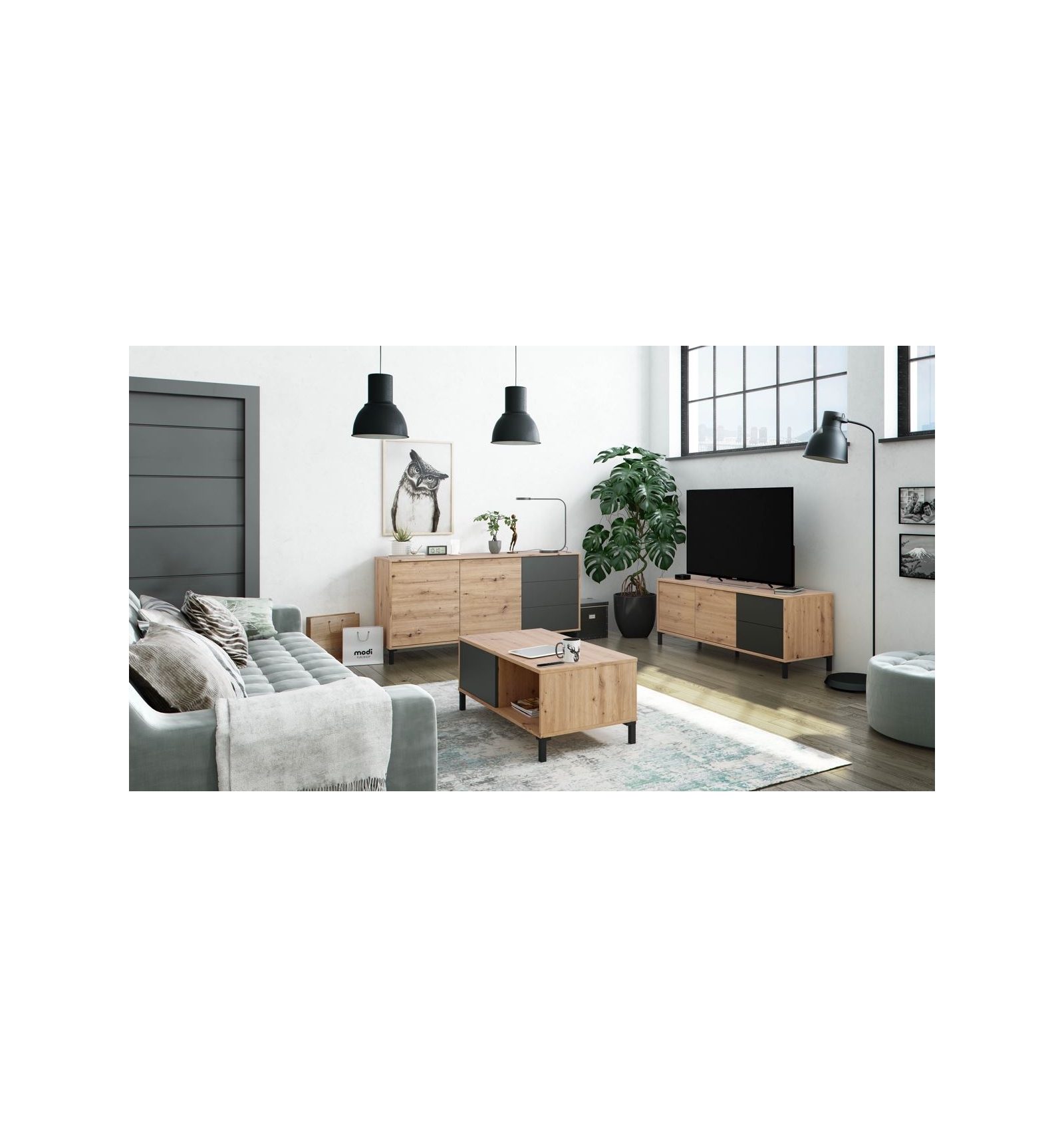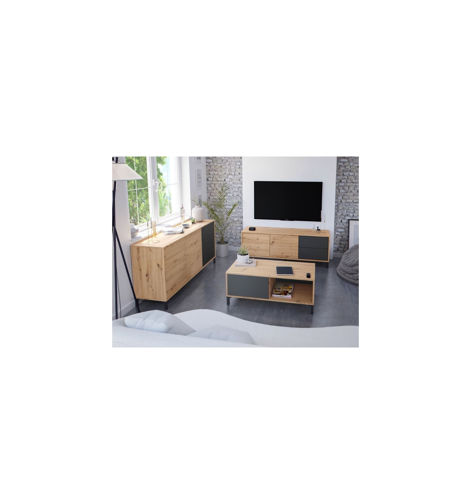 El mueble de TV Texas se presenta en una atractiva combinación de colores en roble y gris antracita ideal para aportar modernidad a tu sala de estar.