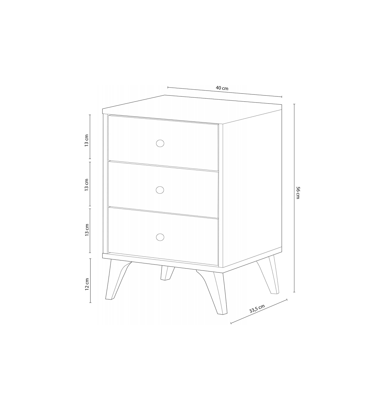 La mesita auxiliar Zoe, tiene un ancho de 40 x 33,5 cm de profundidad, pero además cuenta con 3 amplios cajones con capacidad de 34 x 25 x 10 cm, lo que nos permite tener todo organizado y a mano.