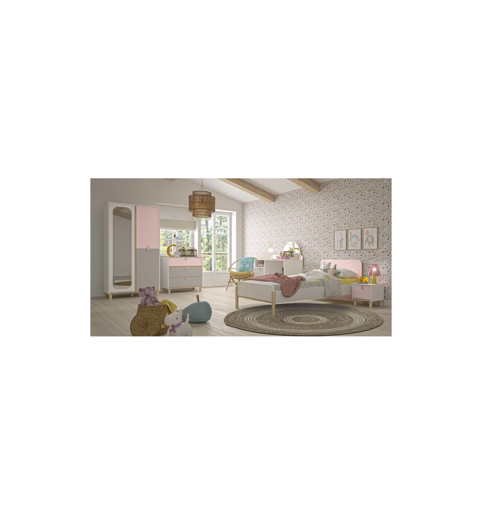 Si estás pensando en redecorar el dormitorio infantil, no te pierdas la cómoda, la cama, el escritorio y el armario de la Serie Amira.