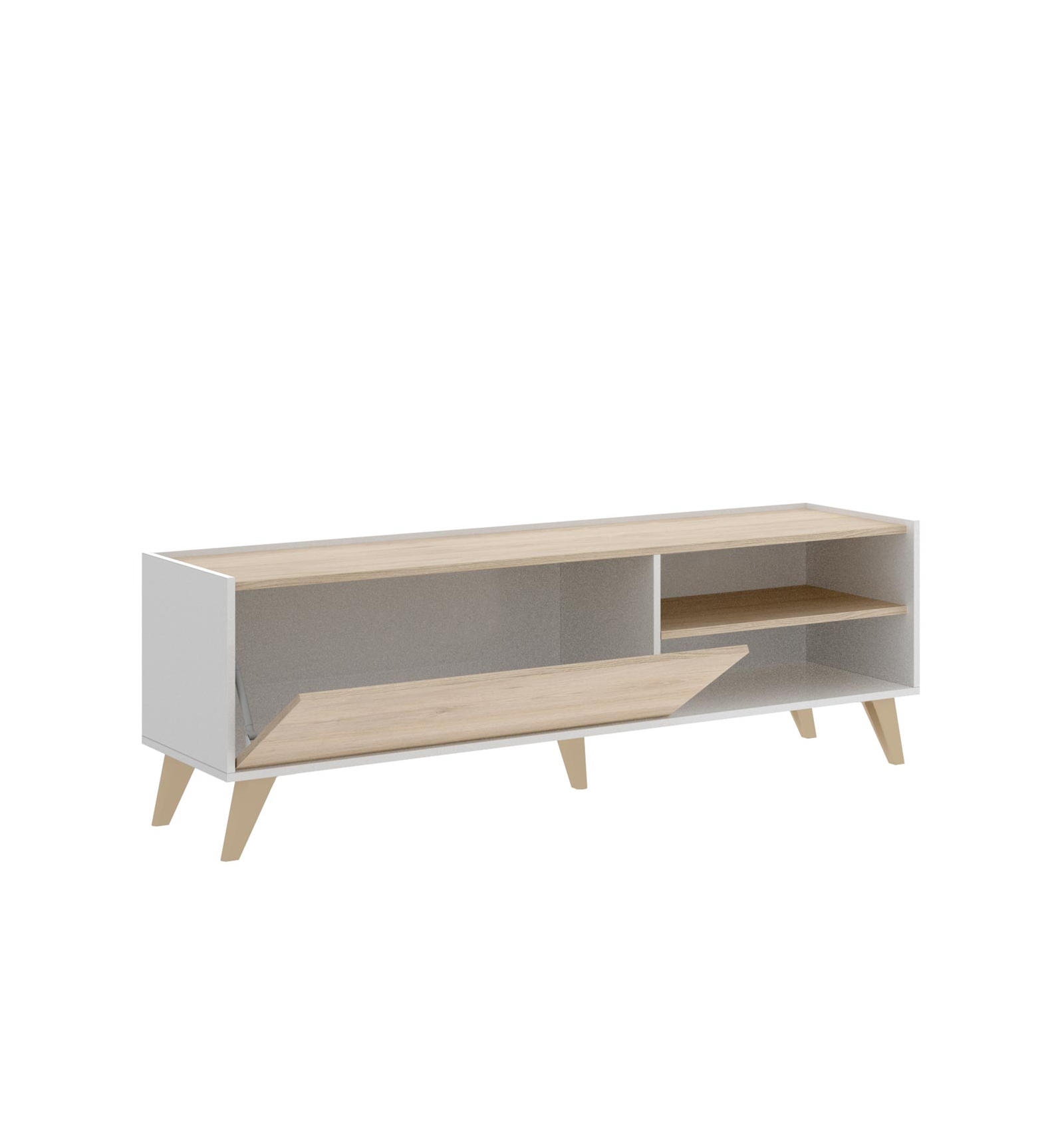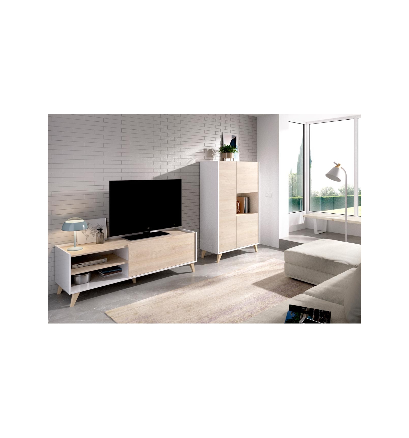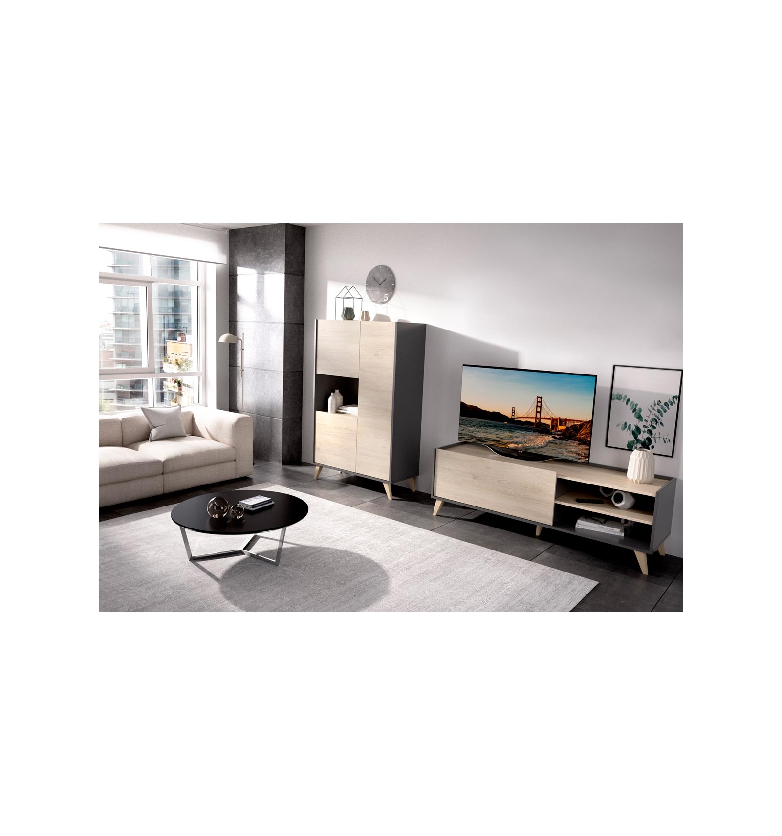 Nuestro conjunto de TV de estilo nórdico está diseñado pensando en la funcionalidad y la estética. Está compuesto por un mueble para TV y un versátil módulo alto, disponibles en dos opciones de color: natural y blanco o natural grafito. Puedes elegir el que mejor se adapte a tu decoración y estilo personal.