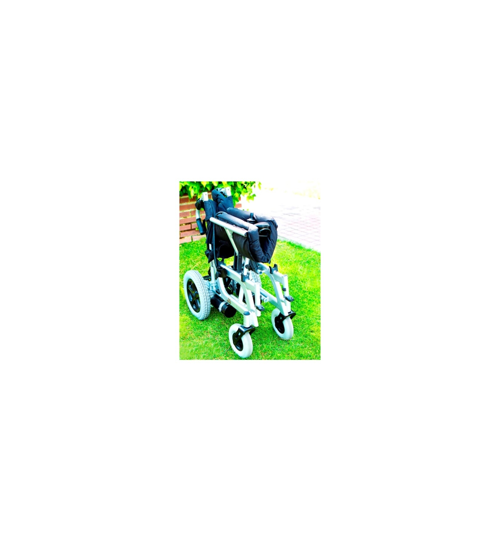 La silla de ruedas plegable Emblema ofrece una amplia gama de accesorios (no incluidos): porta latas, porta bastón, porta muletas y adaptación del joystick.