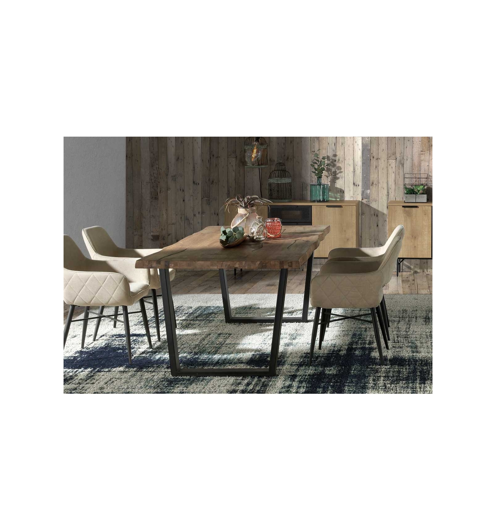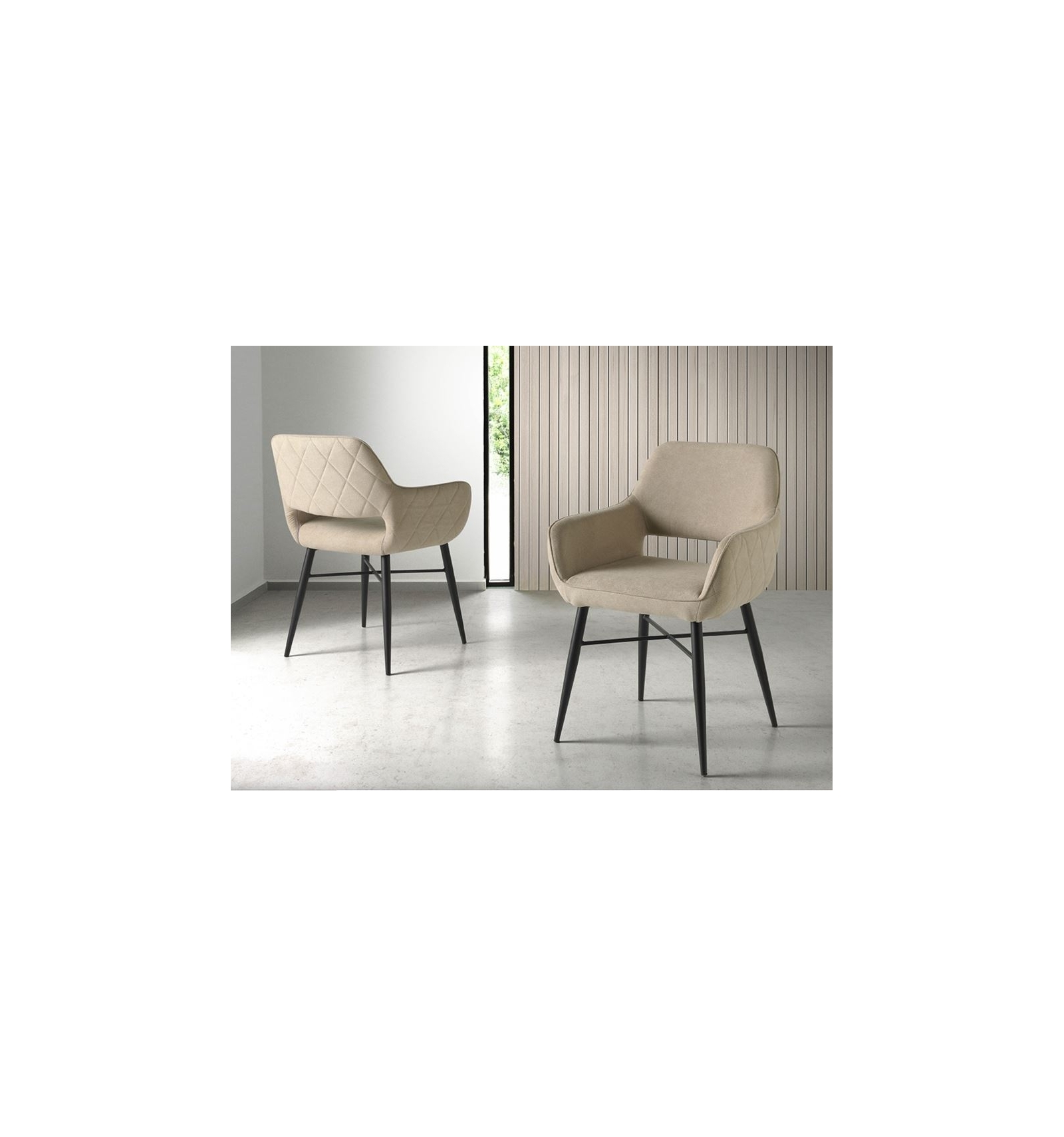 Completa tu mesa de comedor con esta moderna y cómoda silla con reposabrazos en color beige.