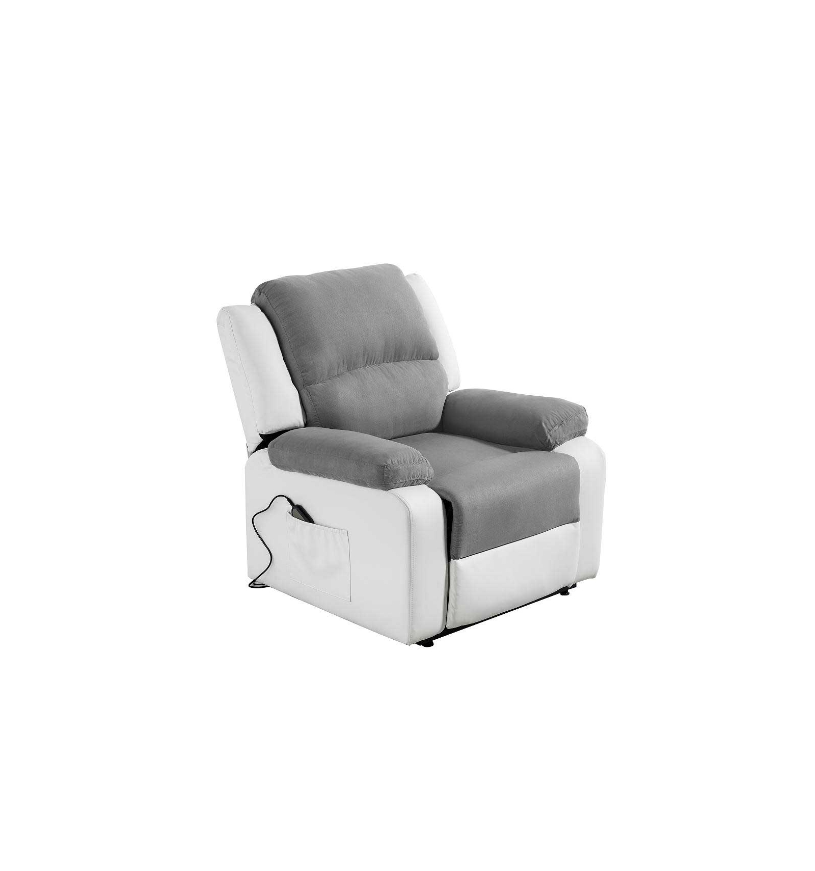 Este sillón elevador se puede encontrar en dos versiones: microfibra gris y polipiel gris oscuro; o microfibra gris y polipiel blanco. Ambas combinan perfectamente con la decoración de tu hogar.