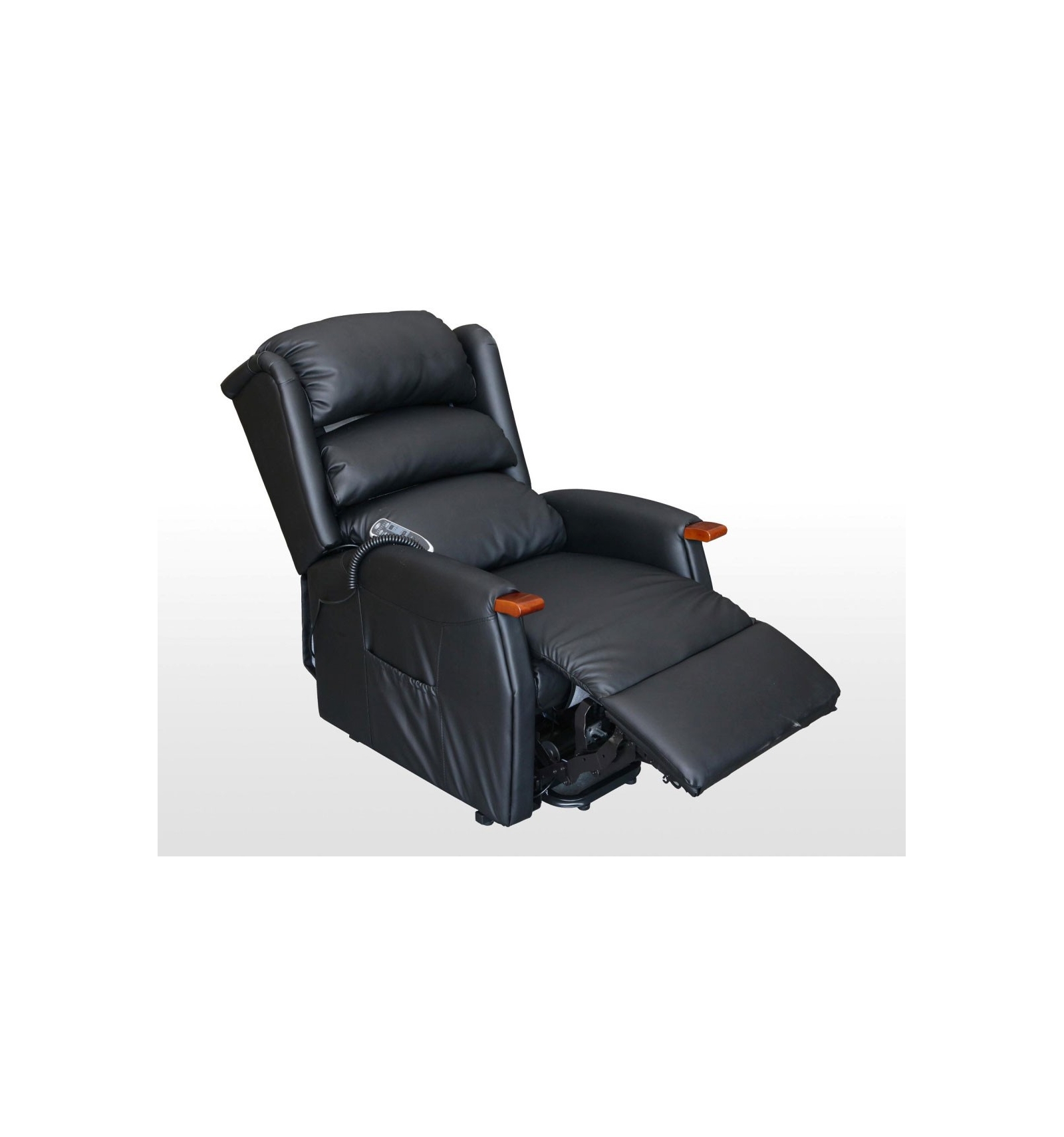 El sillón eléctrico Bi-Motor Splendor es un sillón individual tipo orejero con un agradable acabado en polipiel negro y con el detalle de los reposamanos en madera que le confieren un aire particular al sillón. También dispone de un bolsillo lateral para la colocación del mando a distancia o para colocar la prensa.