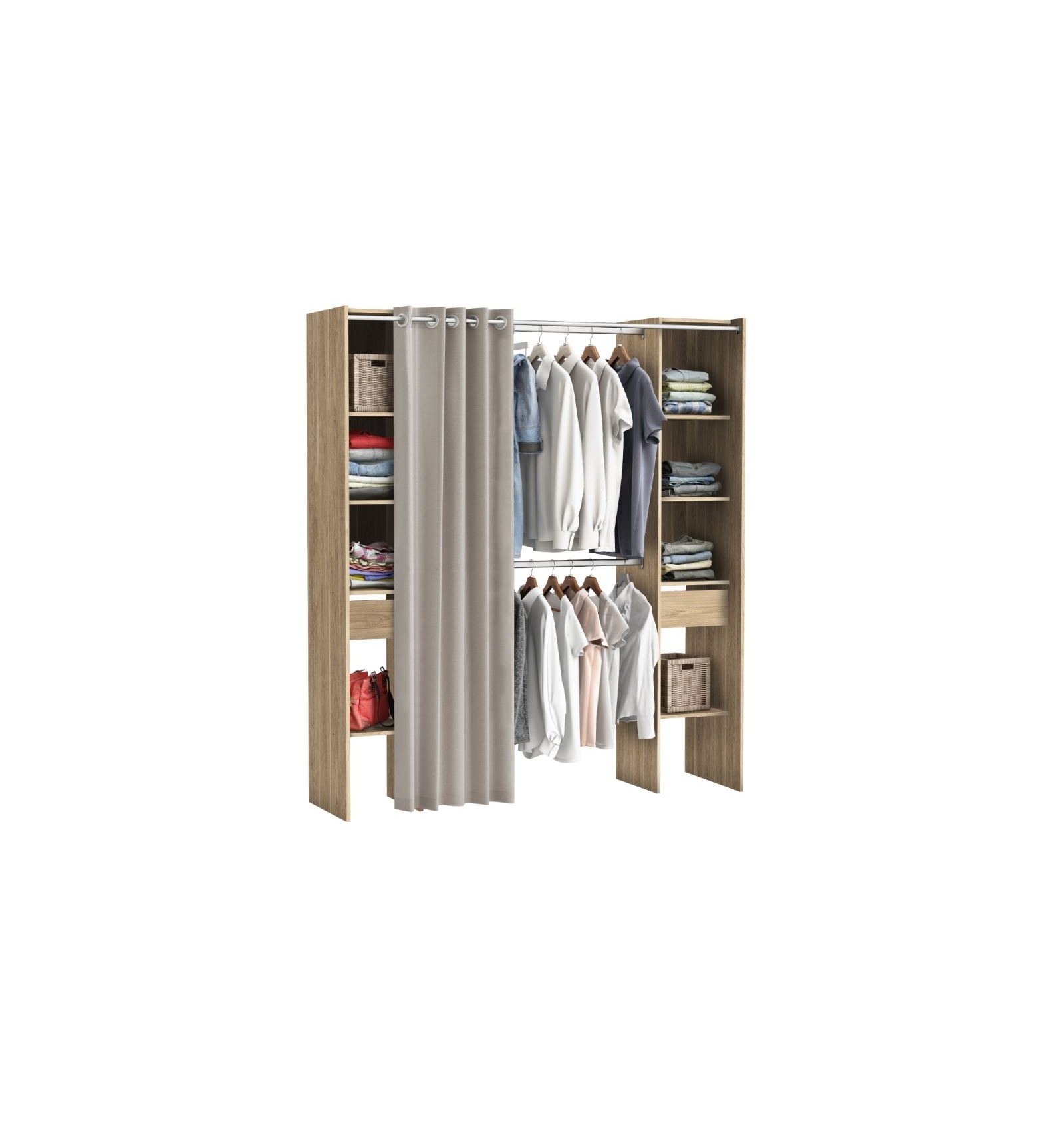 También dispone de un cajón en cada columna, para ropa interior, complementos y para aquello que quieras tener bien guardado. Asimismo dispone de una cortina frontal que mantendrá la ropa oculta y alejada del polvo.