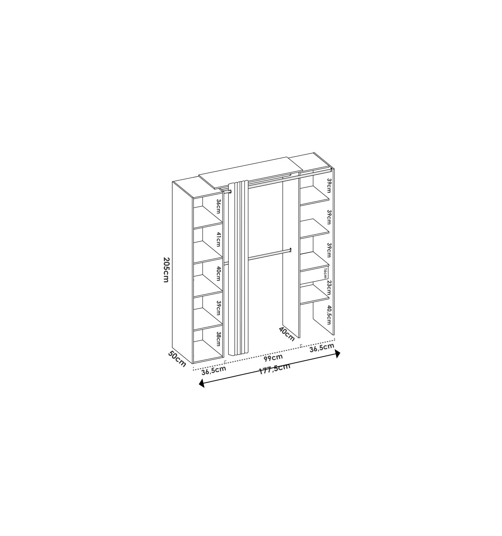 | Otras características: | Armario vestidor adaptable de 177 a 110 cm, para ello se deberán cortar las 3 barras a la medida deseada. |
