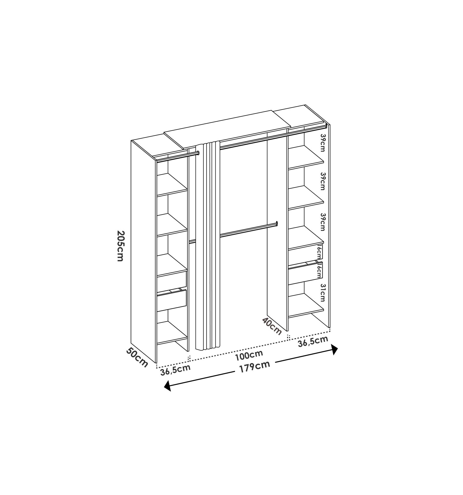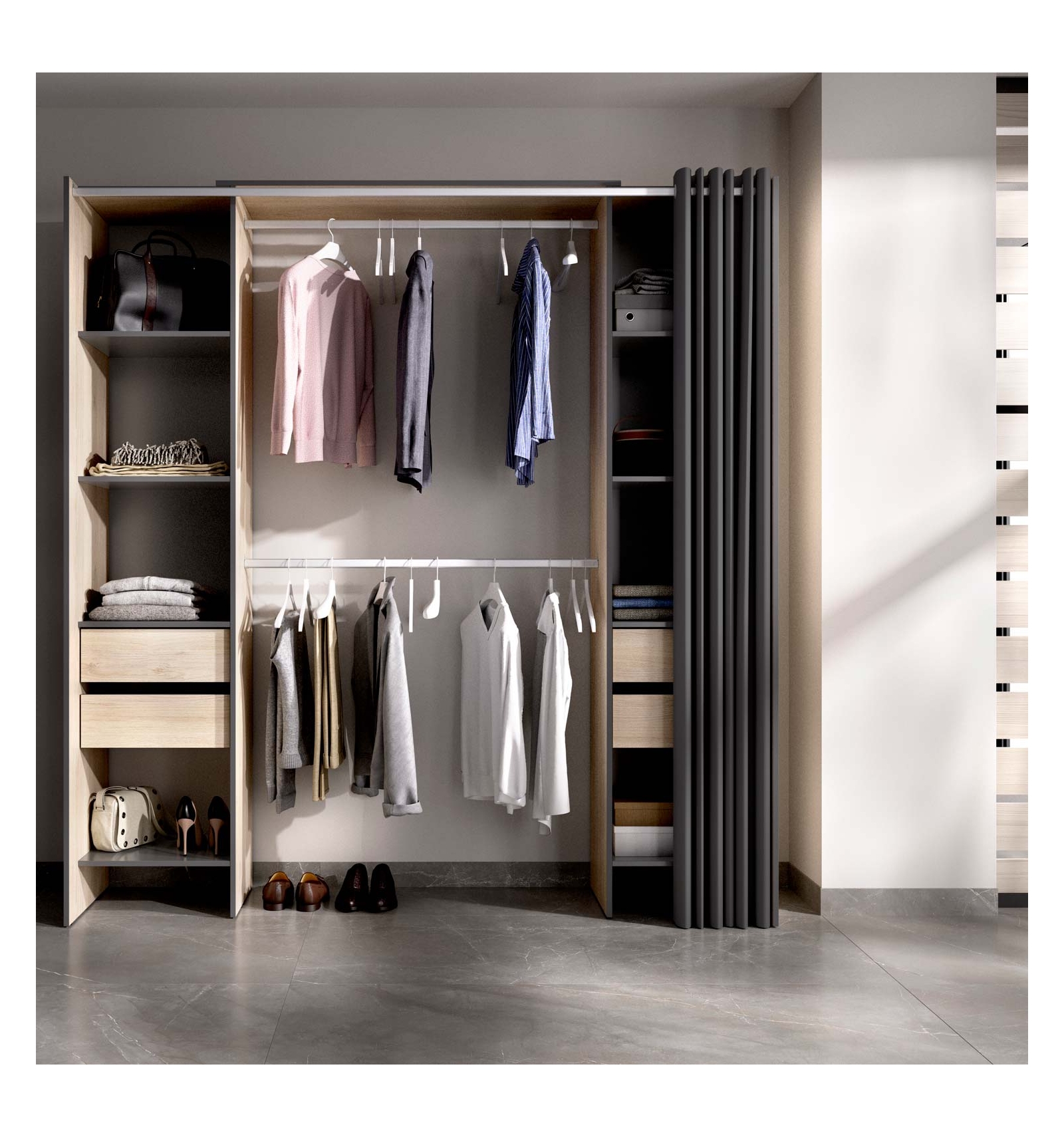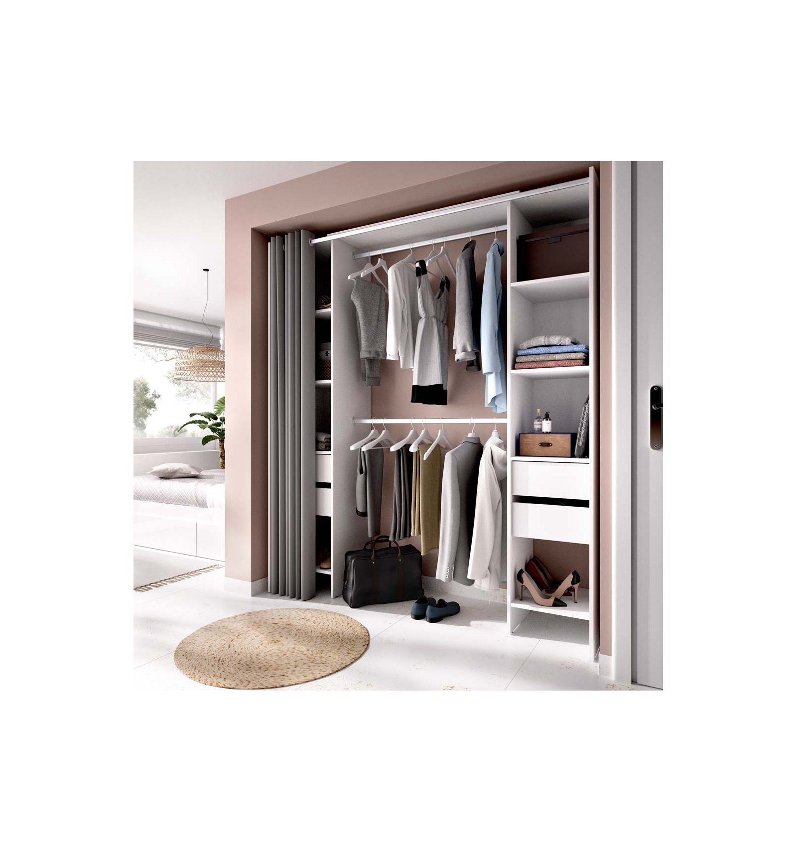En resumen, nuestro mueble vestidor ofrece un diseño espacioso y elegante con opciones de color versátiles. Con sus tres módulos bien distribuidos, proporciona un amplio espacio de almacenamiento para tus prendas y accesorios. Además, la posibilidad de cerrarlo con una cortina le añade un toque de privacidad y versatilidad. ¡No pierdas la oportunidad de tener este increíble mueble vestidor en tu hogar!