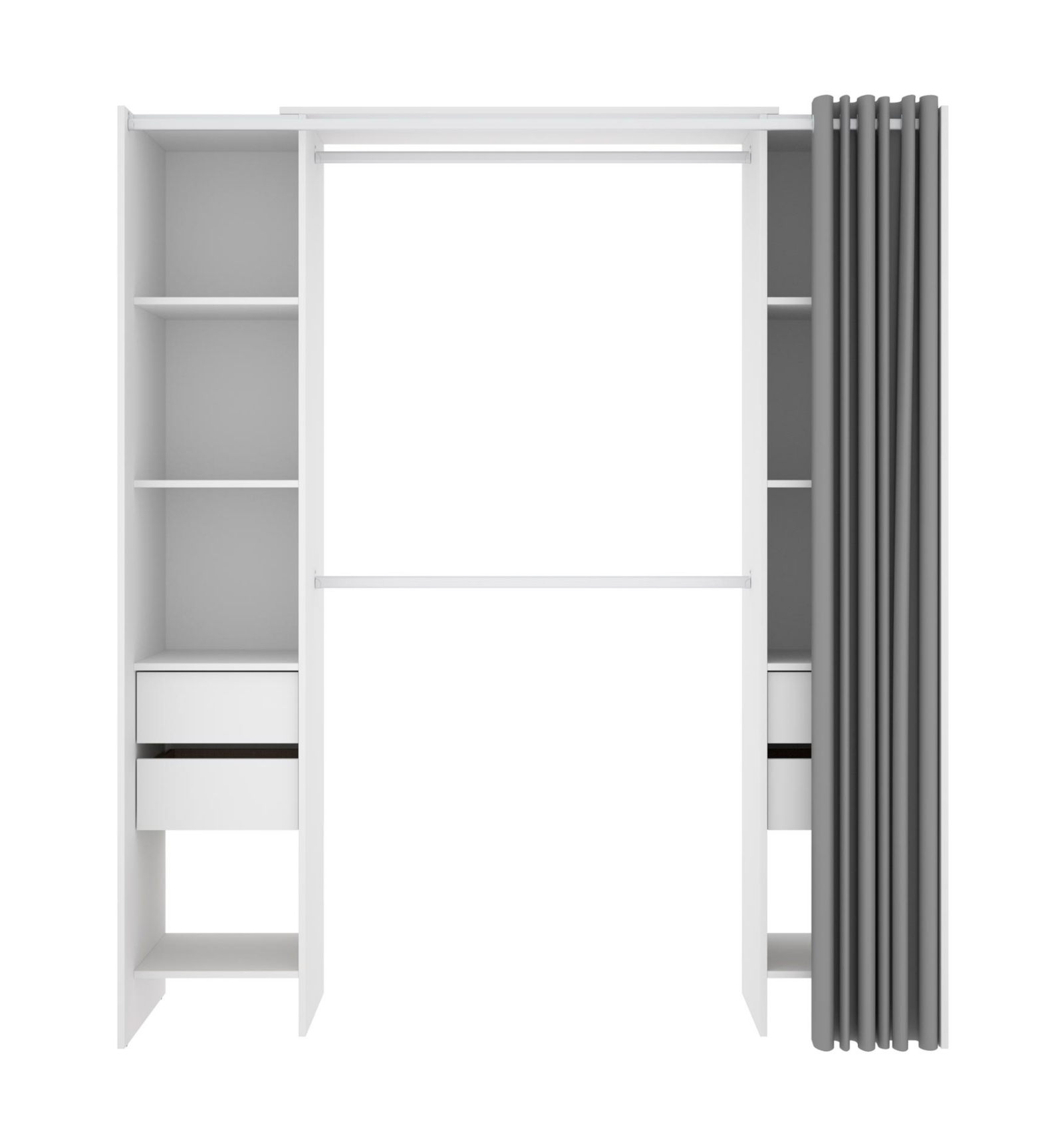 Completa tu dormitorio con este amplio vestidor de gran capacidad de almacenaje que incluye 4 prácticos cajones para guardar tus objetos personales.