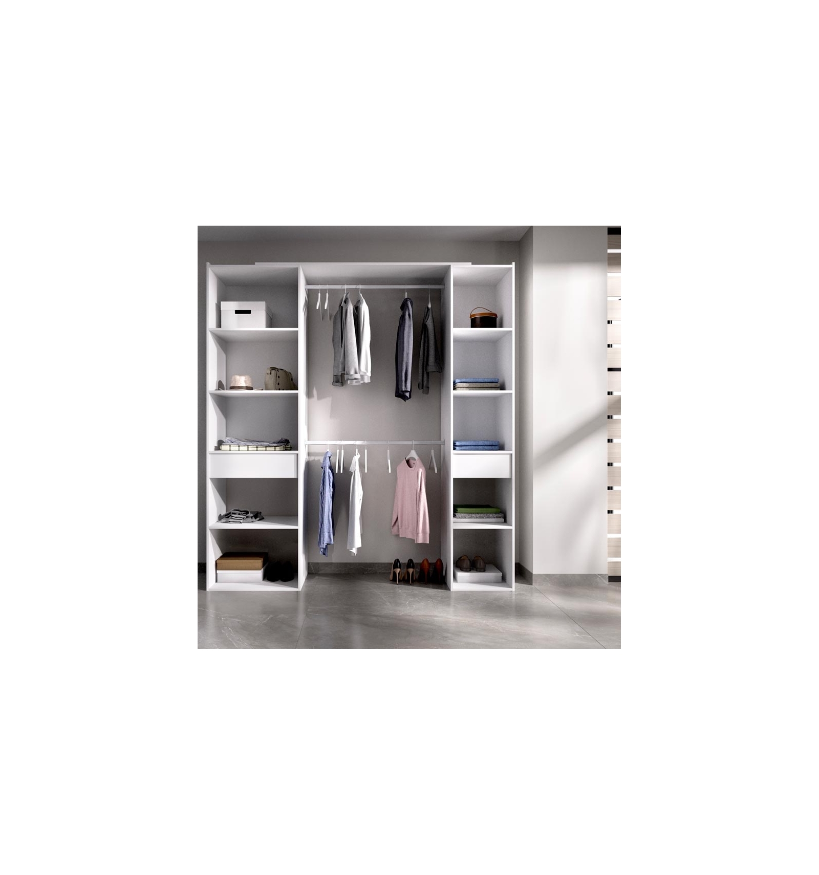 VESTIDOR COMPLETO CON 2 BARRAS, ESTANTES Y CAJONES