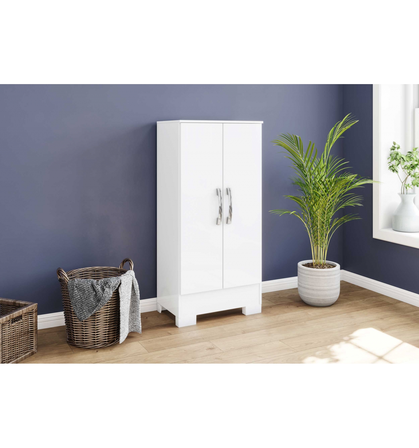 El armario multiuso Gina está disponible en color blanco. Gracias a sus patas inferiores, podrás mantener el mueble protegido de la humedad al tiempo que podrás limpiar debajo fácilmente.