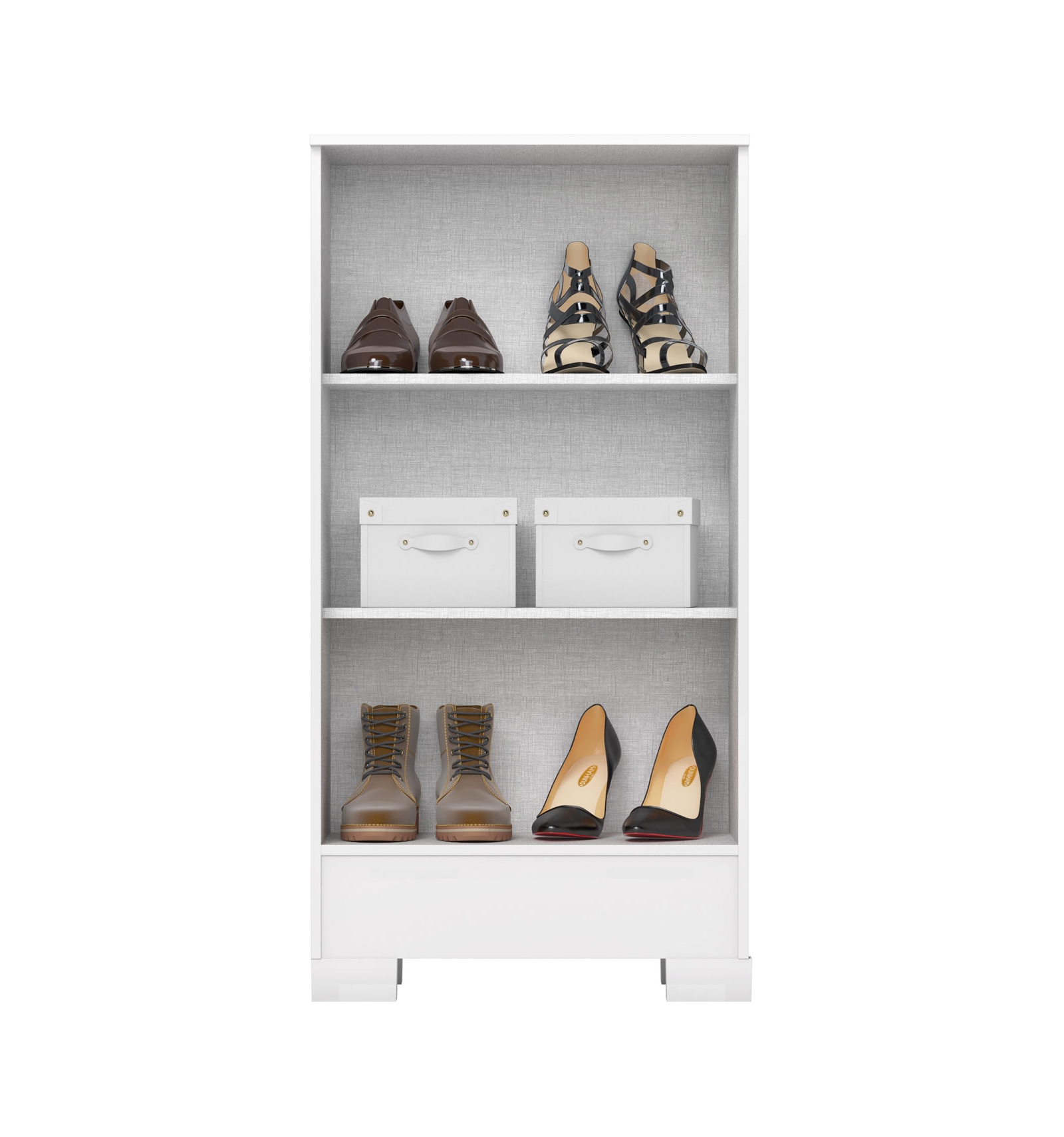 El armario multiusos Gina es un mueble de dimensiones reducidas y con 3 amplios estantes interiores que soporta hasta 8 Kg cada uno.